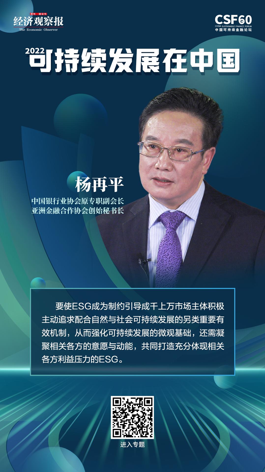 本期我们采访了中国银行业协会原专职副会长、亚洲金融合作协会创始秘书长杨再平,就“以ESG为契机强化可持续发展的微观基础”话题展开分享。
