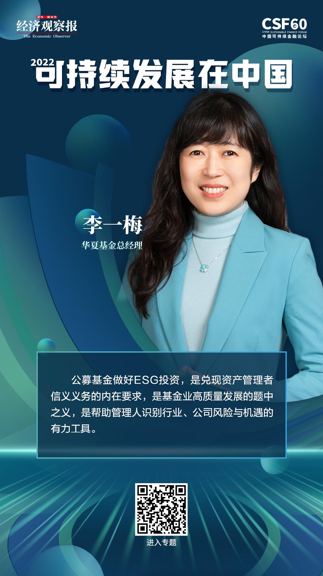 李一梅:公募基金做好ESG投资,是兑现资产管理者信义义务的内在要求,是基金业高质量发展的题中之义,是帮助管理人识别行业、公司风险与机遇的有力工具。