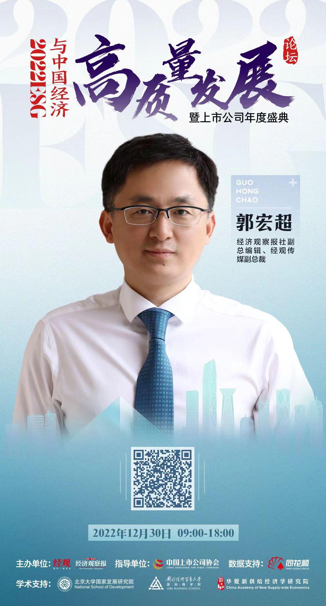12月30日,2022ESG与中国经济高质量发展论坛暨上市公司年度盛典在线上举行,经观携手与会嘉宾,共同探讨ESG热点问题,把脉中国经济,探寻中国经济高质量发展路径,助力中国上市公司未来可持续高质量发展。