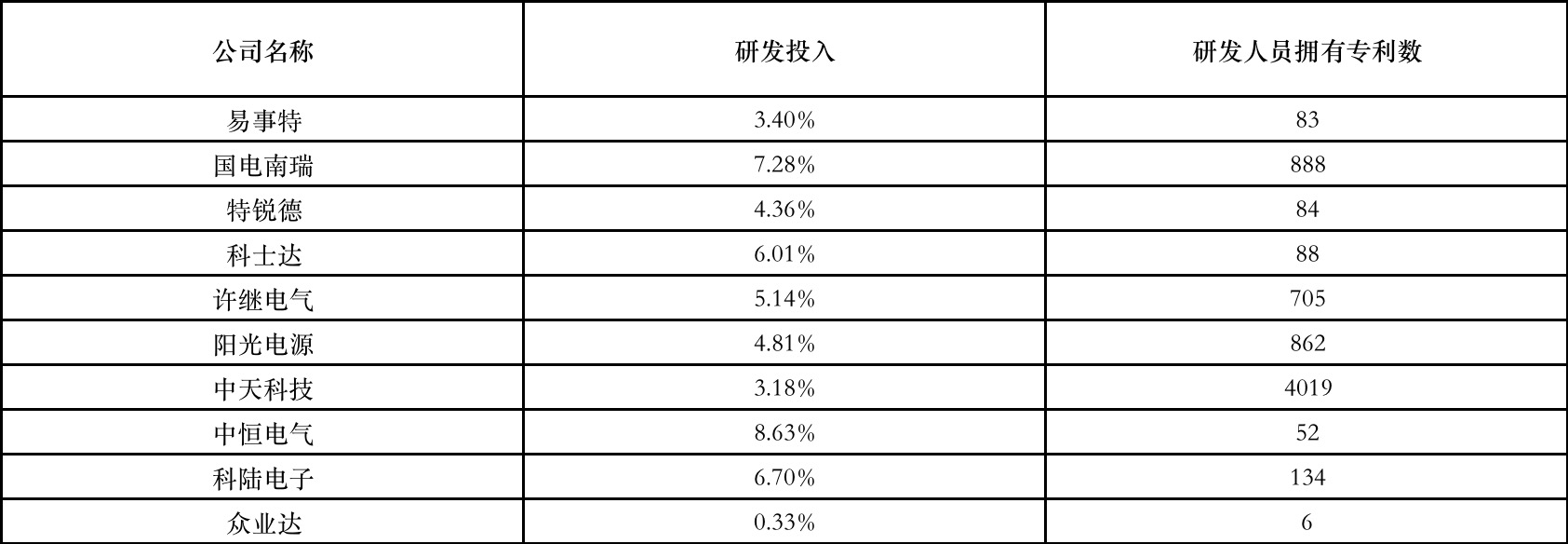 从表1的数据看,国电南瑞的研发投入较高,超过了大部分同行业的企业,仅低于中恒电气一家企业,研发人员拥有的专利数也居于行业第二,但是离行业第一的中天科技尚有较大距离,需要继续加大研发效率。