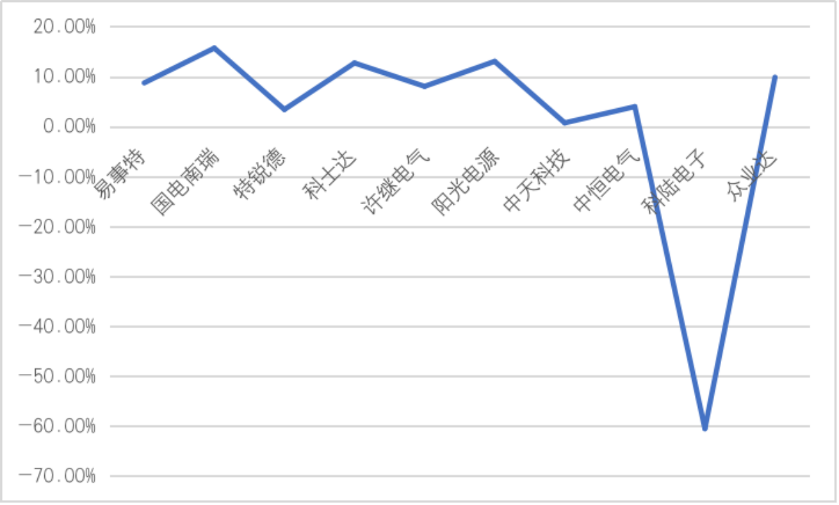 ——财务能力表现中等偏上。2021年国电南瑞的偿债能力为169.66%,而中恒电气的偿债能力为254.12%,为行业最高,在十家新能源充电桩企业中,国电南瑞的偿债能力排在中等水平。在营运能力方面,众业达以187.18%的总资产周转率位于十家企业营运能力之首,国电南瑞的总资产周转率为58.17%,同样处于行业中等靠前的位置。盈利能力方面,2021年新能源充电桩赛道内各企业的净资产收益率差别不大,国电南瑞的净资产收益率为15.7%,居于行业首位。最后在发展能力方面,国电南瑞总资产增长率为10.26%,行业最高值为阳关能源的52.98%,国电南瑞的发展能力一般。