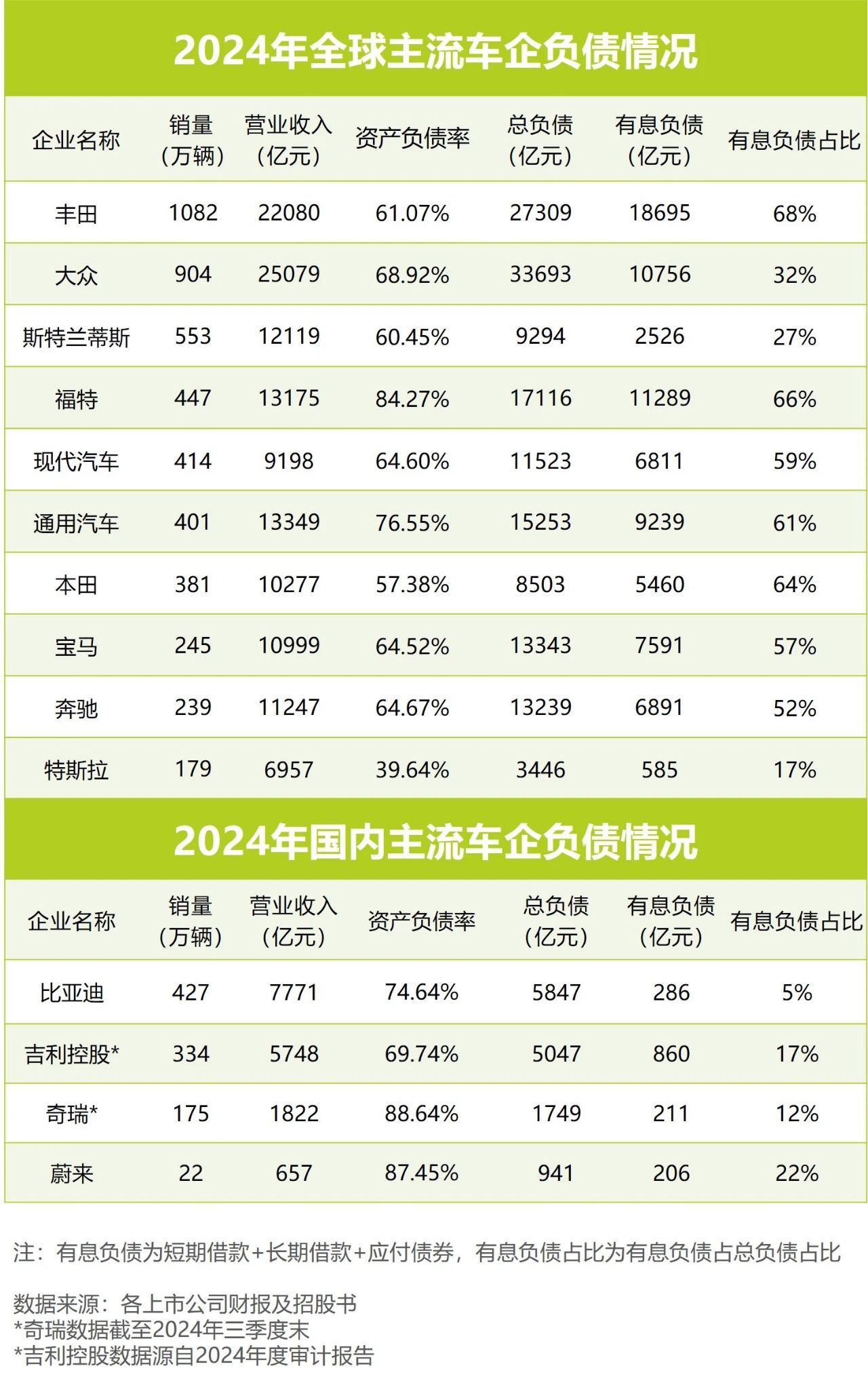 在全球经济风云变幻的当下,中国汽车产业发展愈发迅猛,车企的财务状况备受瞩目。其中,负债率这一关键指标更是成为关注的焦点。因为在全球汽车业“油电切换”的节点上,负债率早已不再是简单的财务指标,而是一部记录产业变迁的密码本。透过2024年财报数据,我们看到的不仅是数字的增减,更是传统巨头与新生力量在转型路上截然不同的生存哲学。