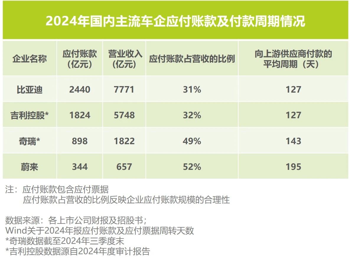 可以看到,在披露了这一数据的国内车企中,比亚迪应付账款占营业收入比例也是最低的,仅为31%。在付款周期方面,据Wind数据,截至2024年末,比亚迪与向上游供应商付款的平均周期是127天,同样为业内最短之一。这些数据表明,比亚迪的快速增长并非以高负债为代价,且其在供应链管理中具有明显优势:较低的应付账款占比与较短的付款周期,既减轻了供应商的资金压力,也增强了自身在产业链中的话语权。