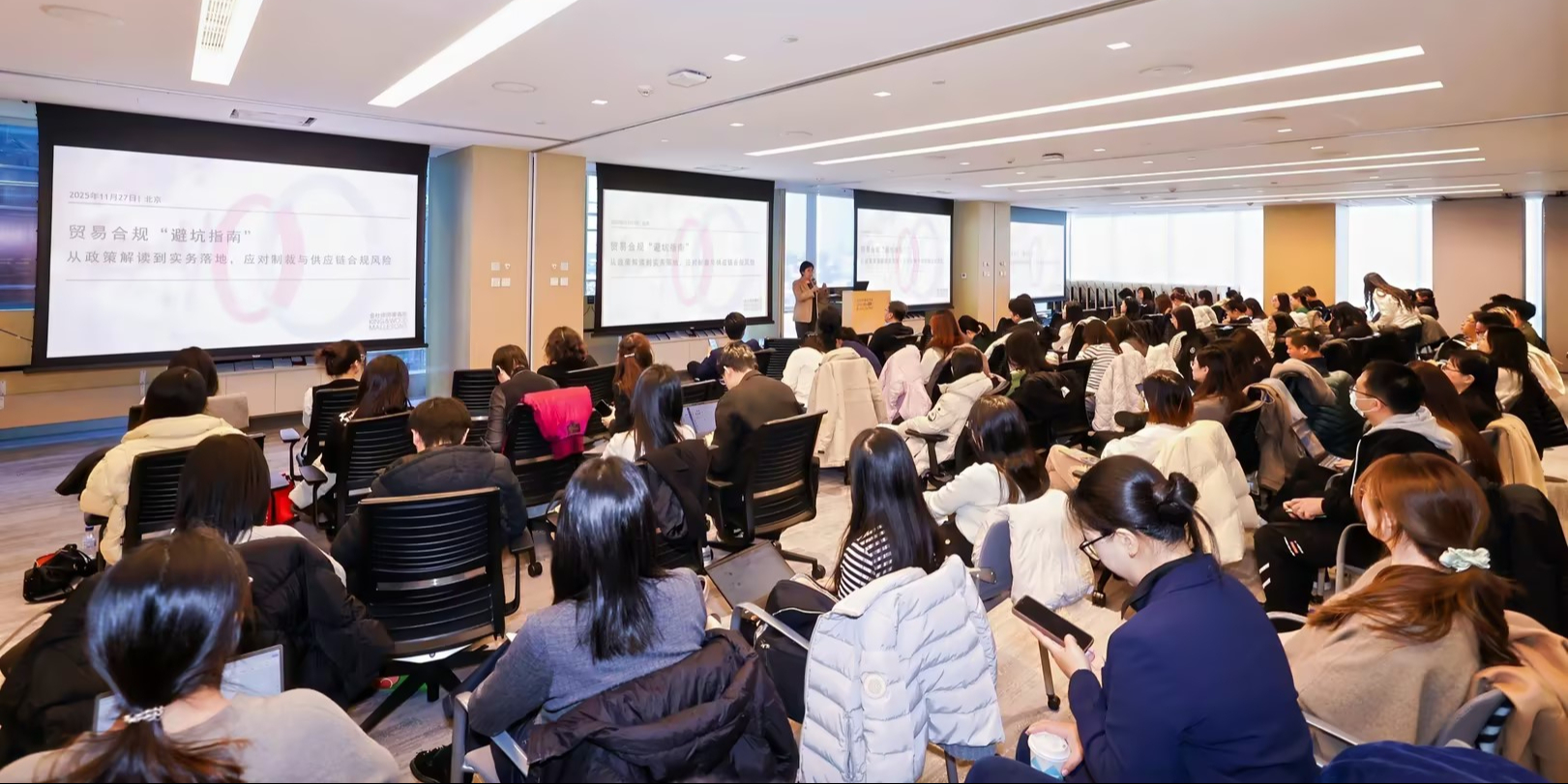 2025年11月27日,金杜律师事务所携手理购(LCOUNCIL)在北京成功举办“贸易合规‘避坑指南’——从政策解读到实务落地,应对制裁与供应链合规风险”主题研讨会。本次活动吸引了近百名企业法务、合规官及高级管理人员参与,现场座无虚席,气氛热烈。