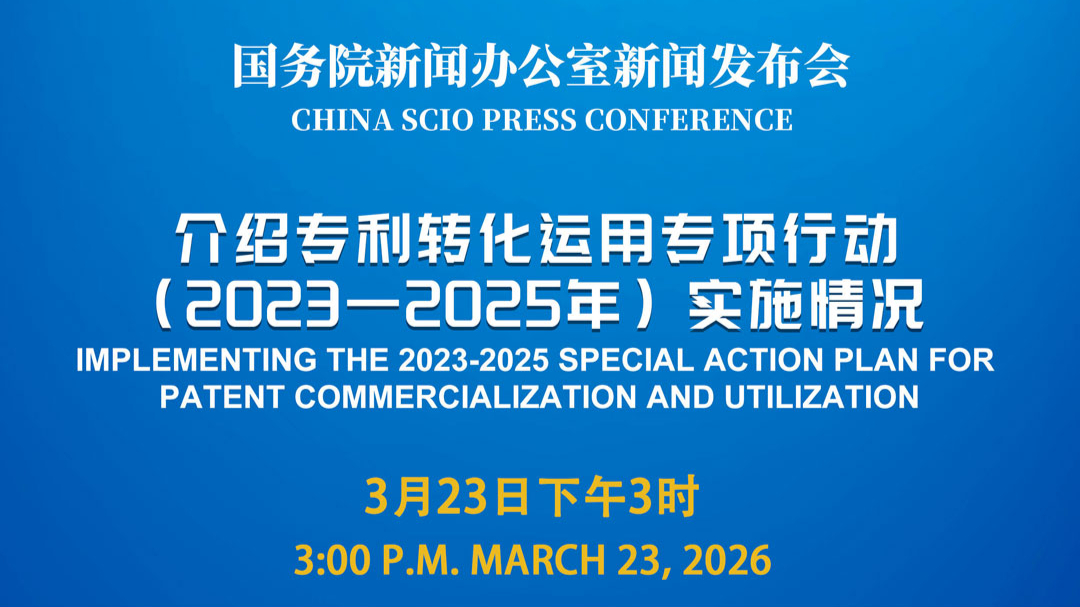 3月23日下午3时,国新办举行新闻发布会,国家知识产权局副局长胡文辉和教育部、工业和信息化部、金融监管总局有关负责人介绍专利转化运用专项行动(2023—2025年)实施情况,并答记者问。