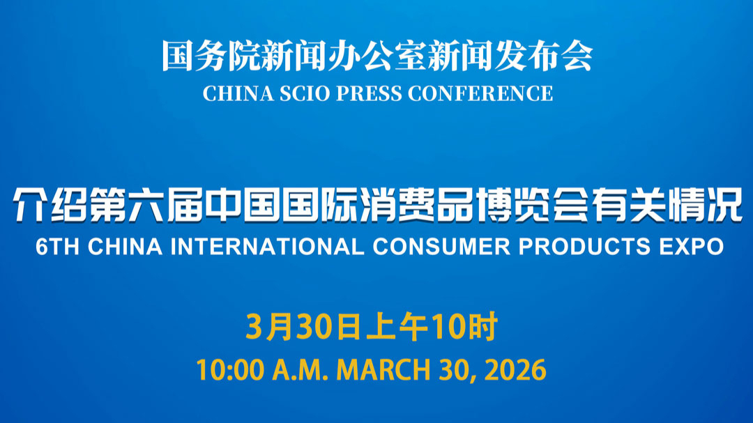 3月30日上午10时,国新办举行新闻发布会,商务部副部长盛秋平,海南省委常委、常务副省长巴特尔介绍第六届中国国际消费品博览会有关情况,并答记者问。