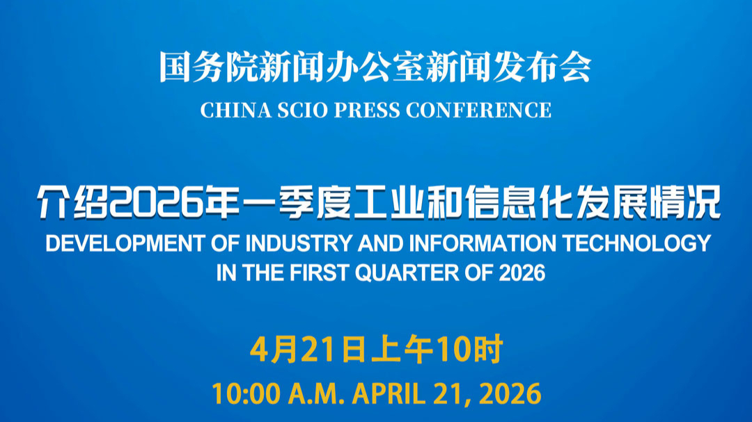 4月21日上午10时,国新办举行新闻发布会,工业和信息化部副部长张云明介绍2026年一季度工业和信息化发展情况,并答记者问。